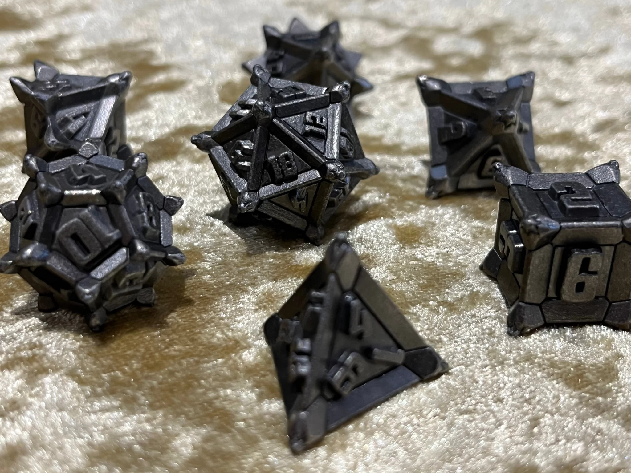 This set is stunning with a heavy metal feel. Roll brilliantly. Make an impact at the table.