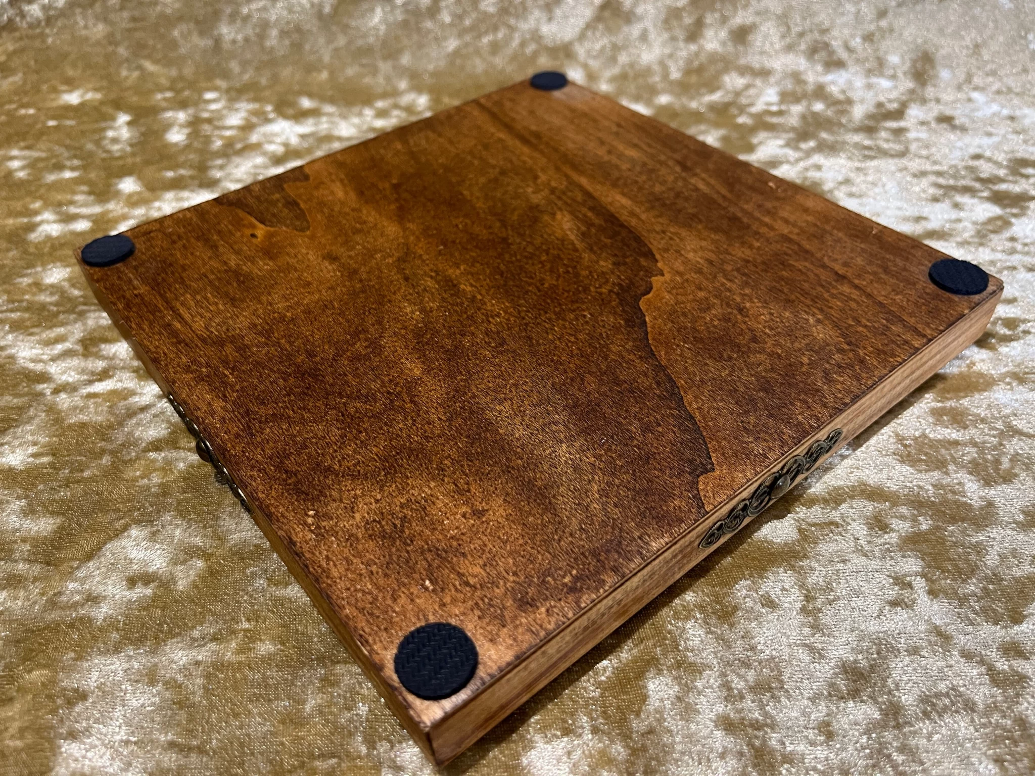 Beautiful dark wood with rubber feet. An ideal gift for Dungeon Masters.